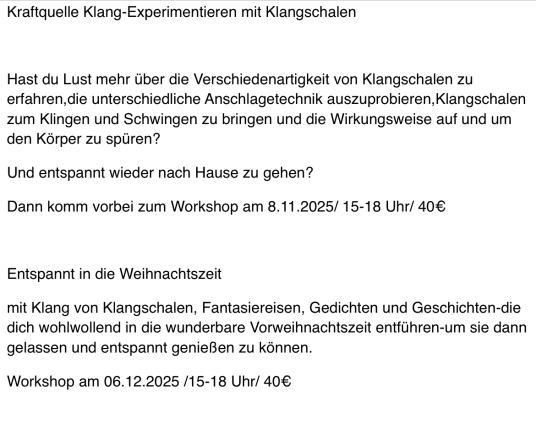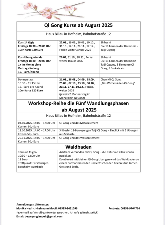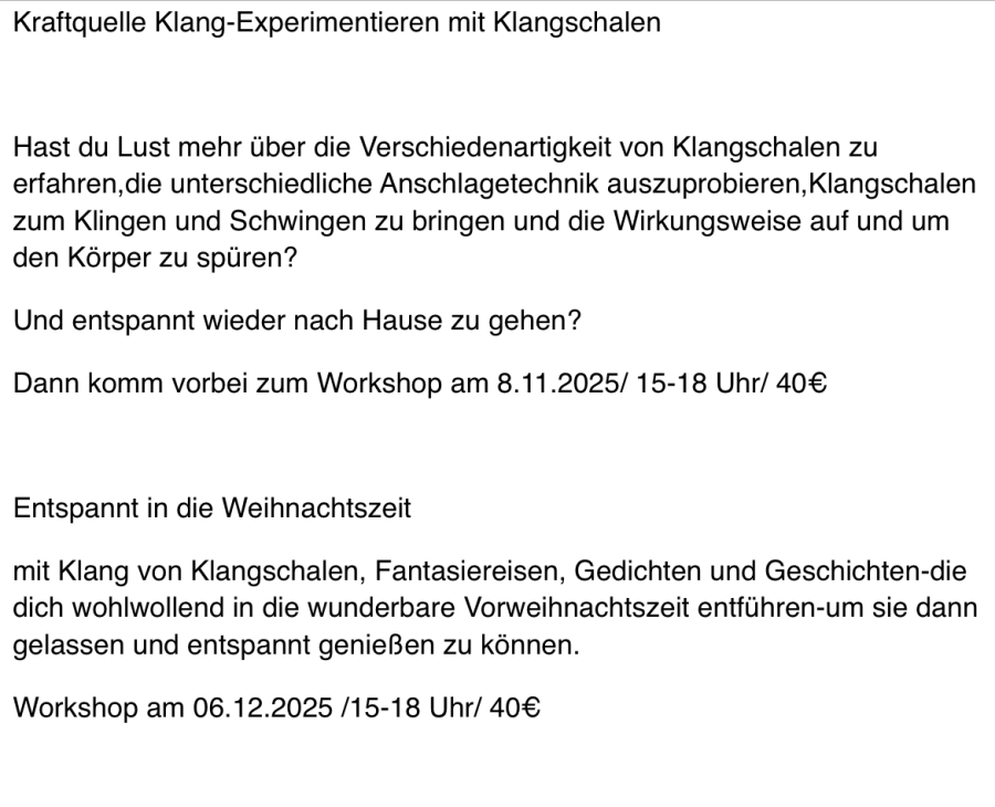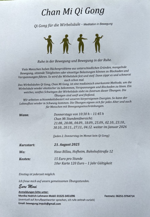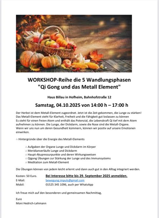 Nähere Infos und Anmeldung: mail@brittasattig.de oder0160/3648640.